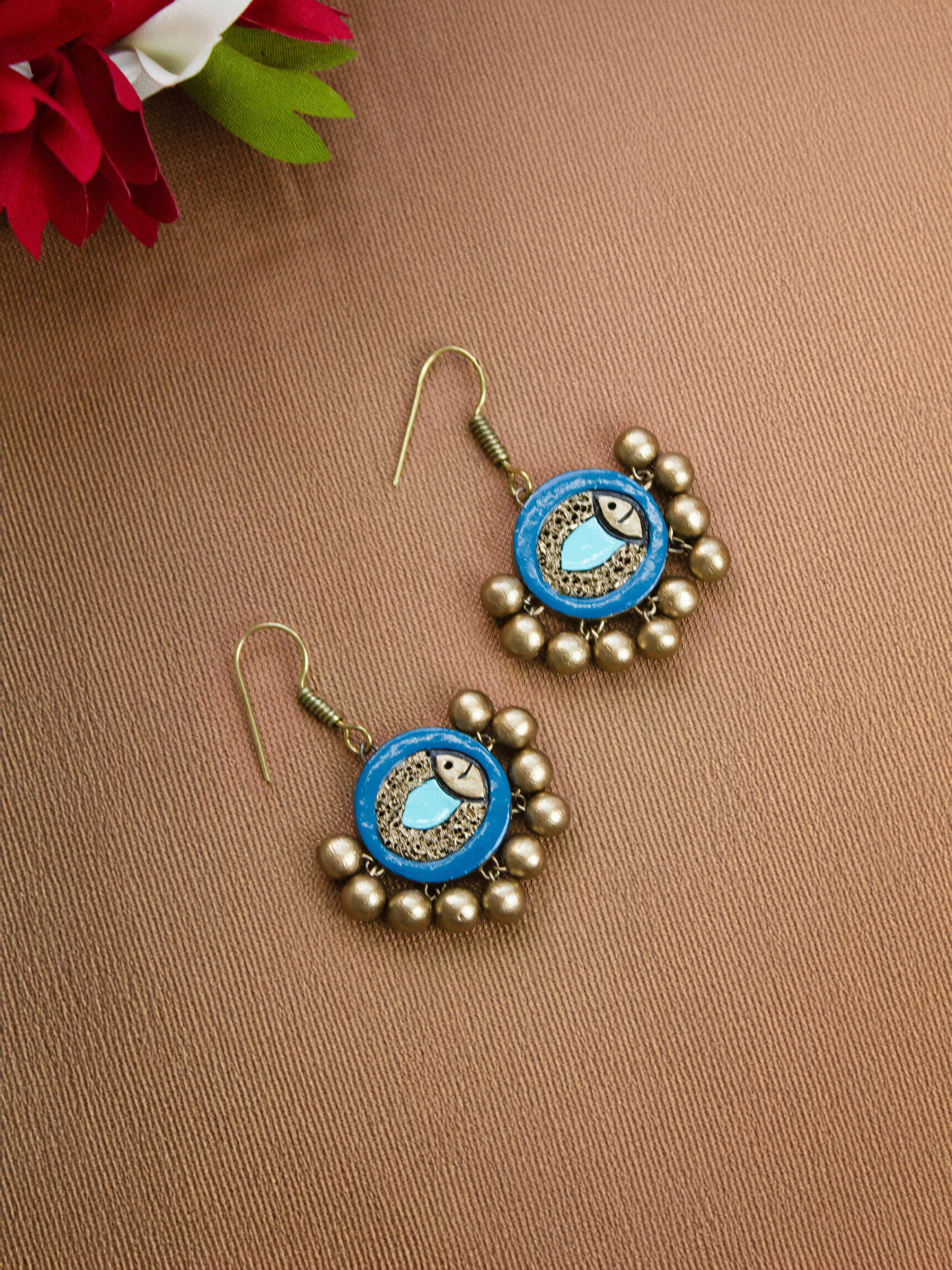 Home Beautifully Handcrafted Fish Terracotta Jewellery Set in Shades of Blue & Antique Bronze