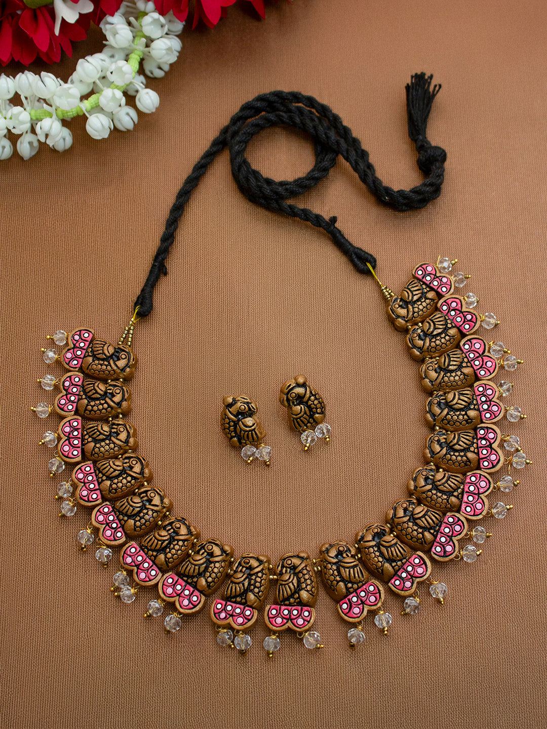 Beautifully Handcrafted Floral Terracotta Jewellery Set in Gold & Shades of Pink