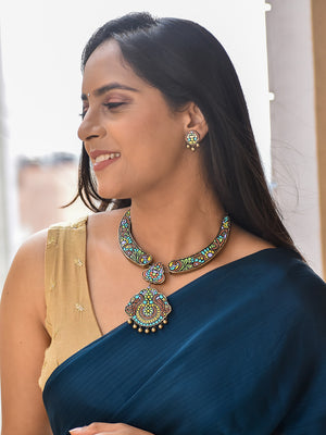 Beautifully Handcrafted Floral Terracotta Jewellery Set in Multicolor & Antique Bronze
