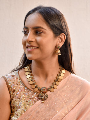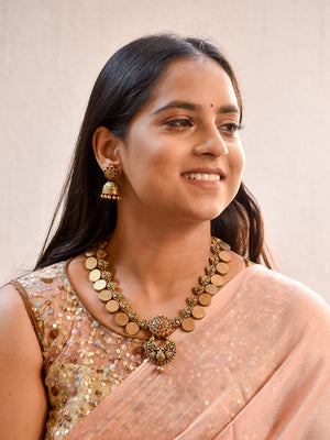 Beautifully Handmade Antique Gold Coin Design Terracotta Jewellery Set