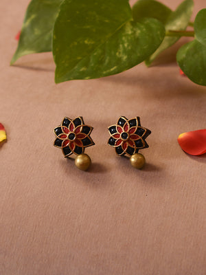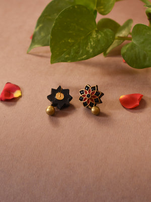 Home Rudrani — Black Red Antique Gold Floral Mandala Work Handmade Terracotta Stud Earrings