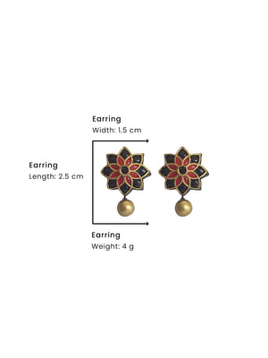 Rudrani — Black Red Antique Gold Floral Mandala Work Handmade Terracotta Stud Earrings