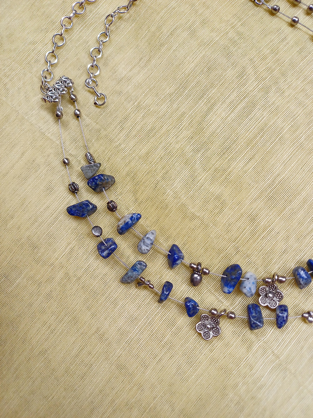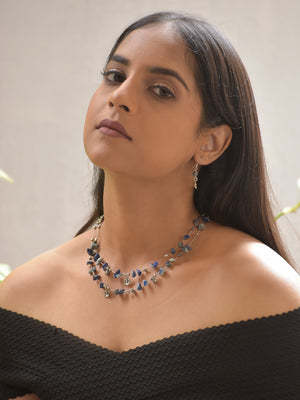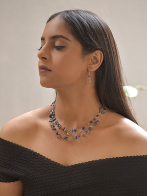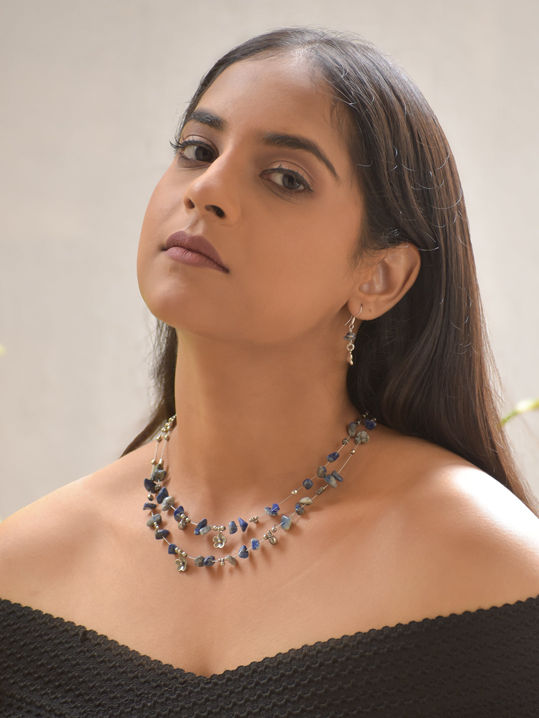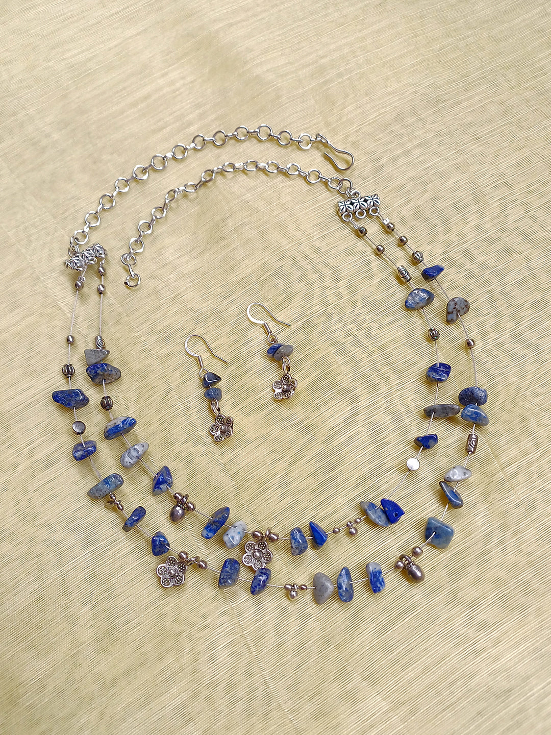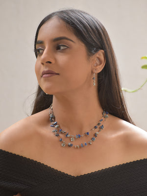 AquaVibe – Blue Agate Two-Layer Necklace Set with German Silver Motifs & Matching Earrings