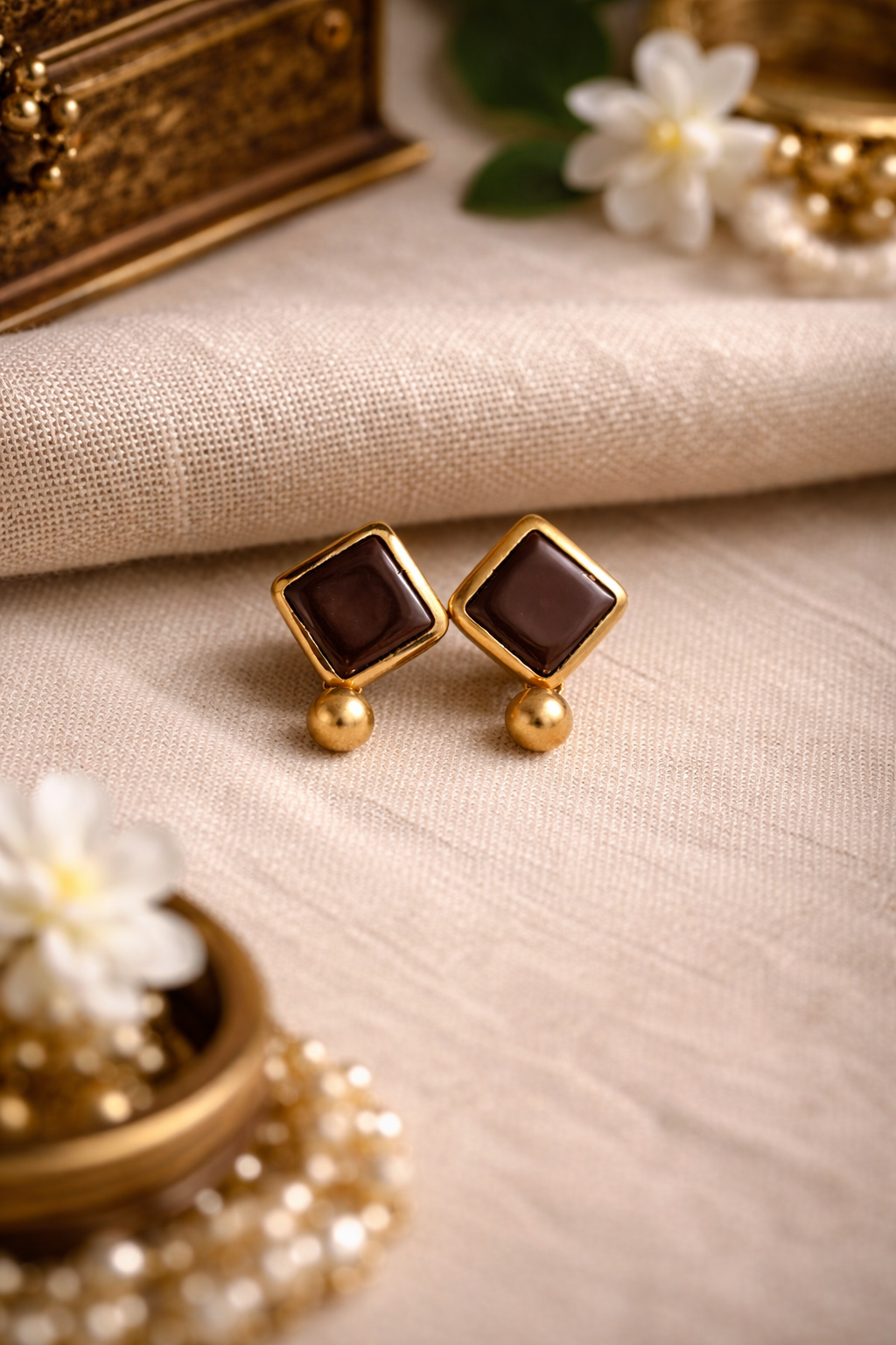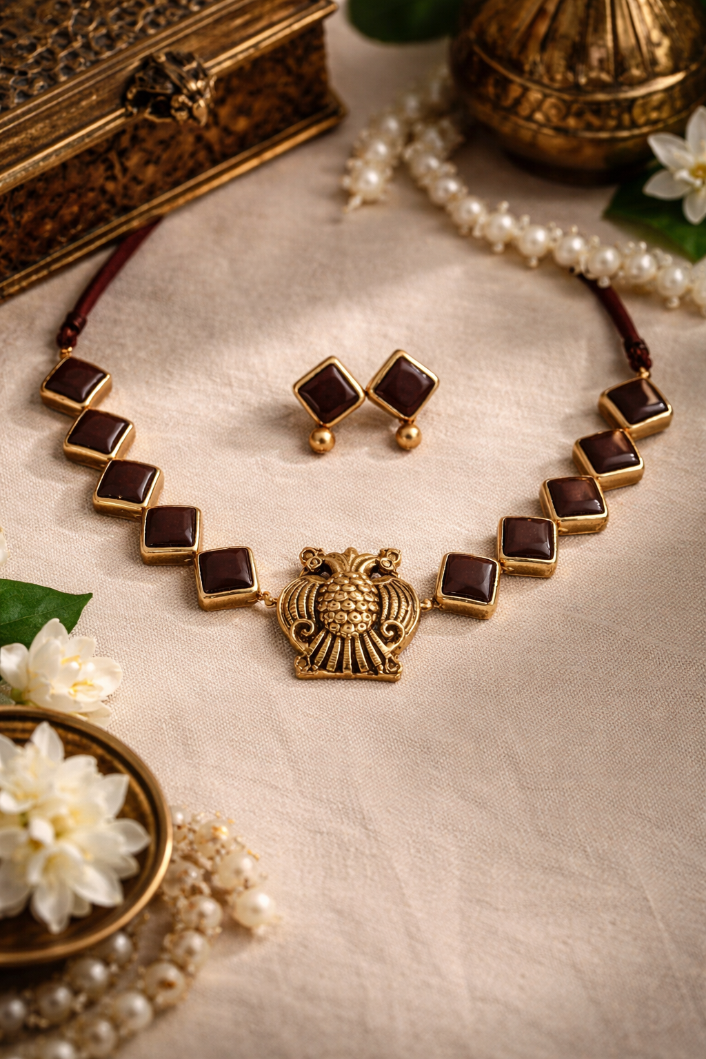 CocoaAura 🤎 — Chocolate Brown Square Motifs With Antique Gold Finish Terracotta Necklace Set