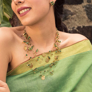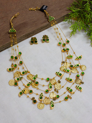 Designer Contemporary 5 Layered Mango Motif And Coin Design With Green Kemp Stones