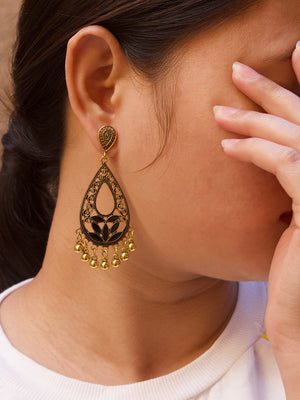 Floral Design Black Dangler Afghani Earring
