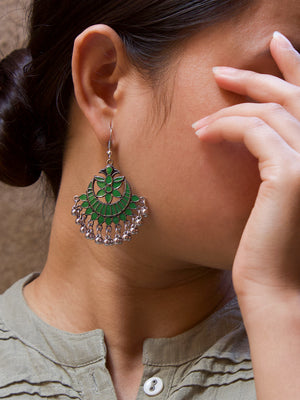 Home Floral Design Green Dangler Afghani Earring