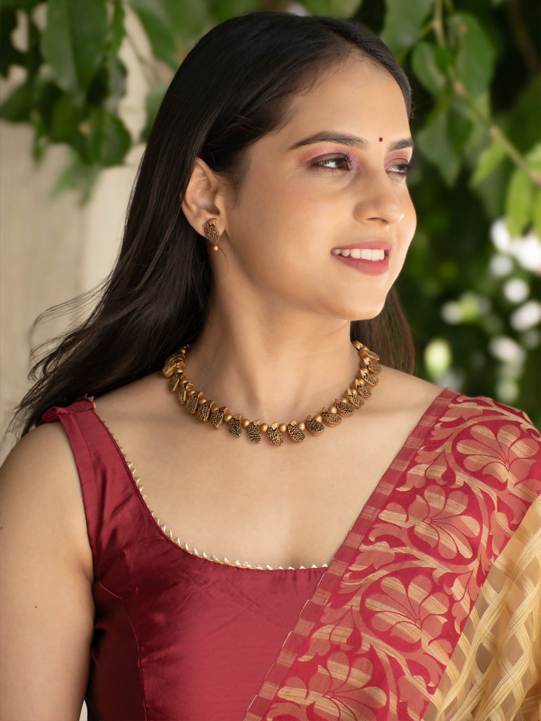 Home Gold Mango Engraved Pattern Handmade Terracotta Necklace Set