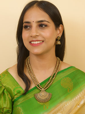 Half Moon Engraved Pendant Two Layered Mala Handmade Terracotta Necklace Set