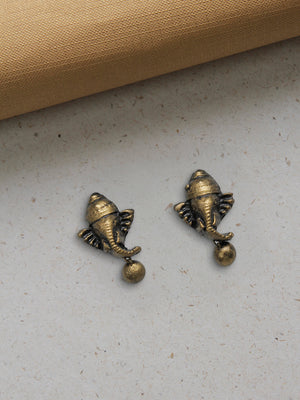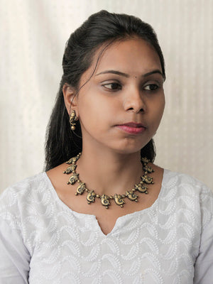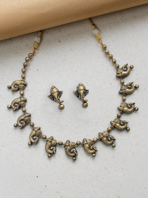 Handcrafted Antique Brass Ganesha Motif Pendant Choker Earrings Set