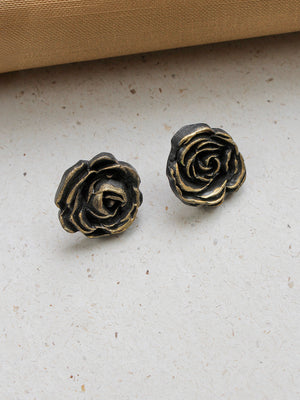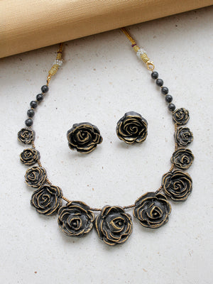 Handcrafted Antique Brass Rose Pendant Choker Earrings Set