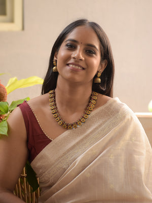 Pushkara - Handmade Terracotta Floral Necklace Set – Yellow Red & Antique Gold Earrings