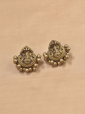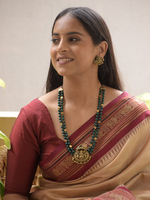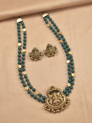 Home Vighneshvara - Handmade Terracotta Ganesha Pendant Necklace Set with Green Beads and Antique Gold Accents Earrings