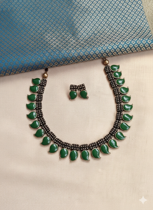 Home Handmade Terracotta Green Mango Motif Choker Necklace with Stud Earrings