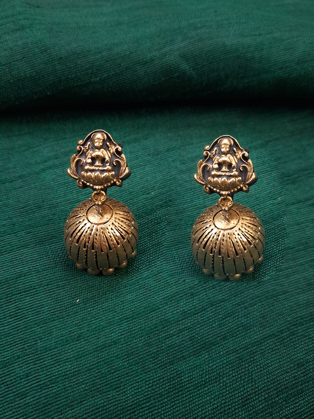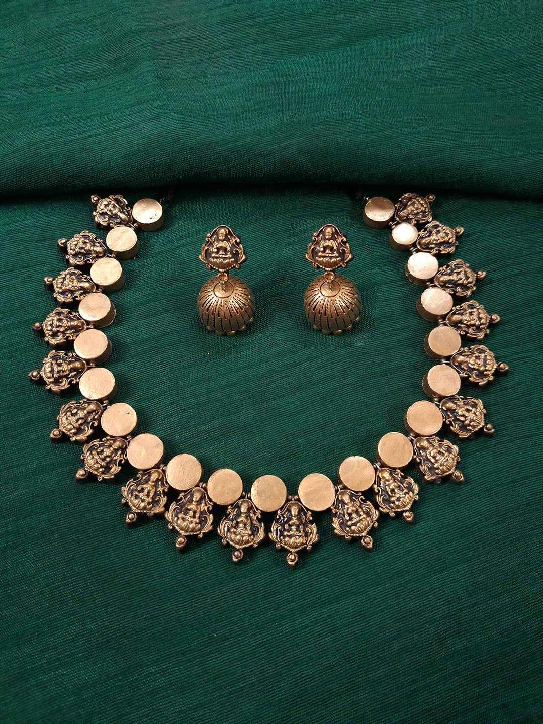 Handmade Terracotta Lakshmi Coin Temple Necklace Set with Antique Jhumkas
