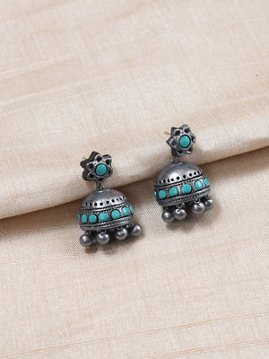 Shivaranjani - Handmade Terracotta Oxidized Silver Peacock Necklace Set with Blue Accents and Matching Earrings