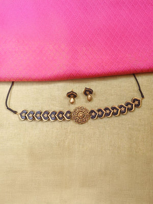 Hridaya – Handmade Terracotta Heart-Motif Choker Set with Antique Floral Centerpiece and Gold Drop Earrings