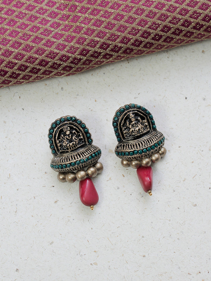 Samaradhana — Lakshmi Design Handmade Terracotta Necklace Set in Purple, Green, and Gold with Crimson Accents
