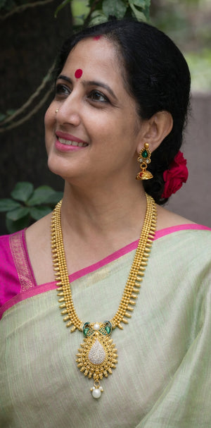 Home Antique Copper Long 3 Line Necklace With Droppings