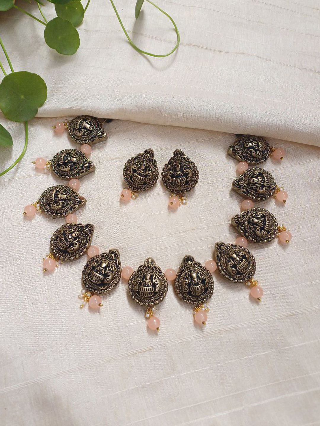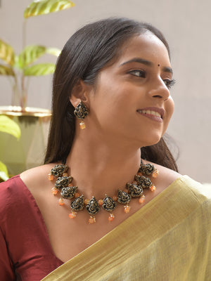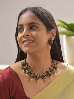 Riddhi-Siddhivinayaka — Lord Ganesha Terracotta Necklace Set with Orange Beads