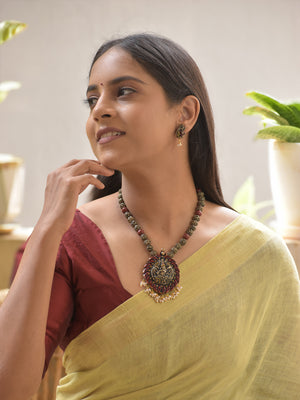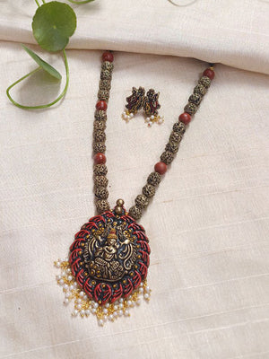 Lord Krishna Pendant Terracotta Necklace Set with Rudraksha Beads Stud Earrings