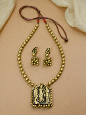 Lord Rama Sita Lakshman Hanuman Antique Gold Mala Temple Design Handmade Terracotta Necklace Set