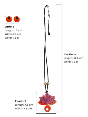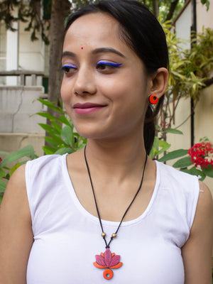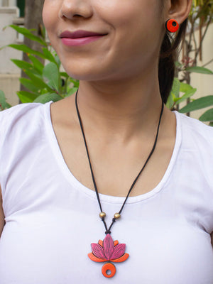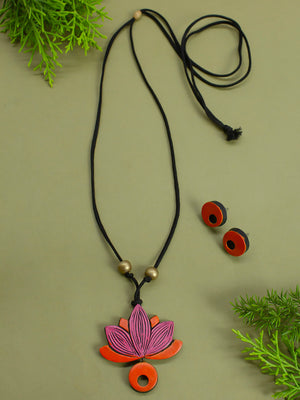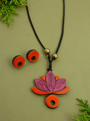 Lotus Design Pink Orange Handmade Terracotta Necklace Set