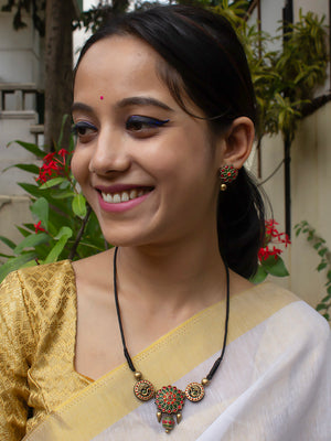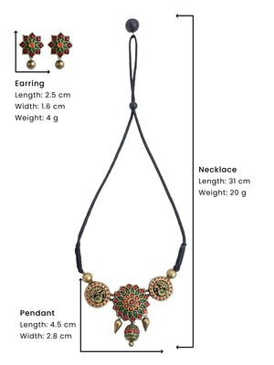 Home Chakramayura — Mandala Art and Peacock Design Circular Antique Gold Red Green Handmade Terracotta Choker Necklace Set