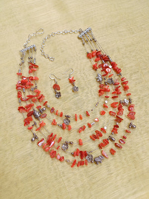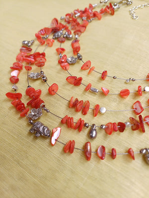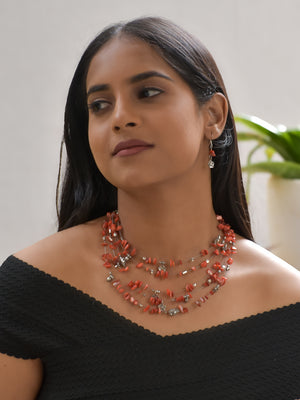 Solevia – Multi-Layer Orange Agate Necklace with German Silver Motifs