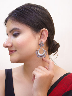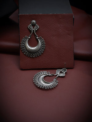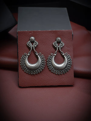 Oxidised Silver Plated Crescent Design Dangler Earring