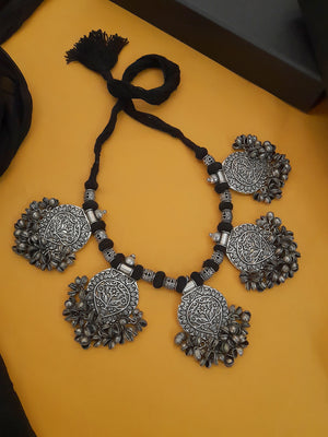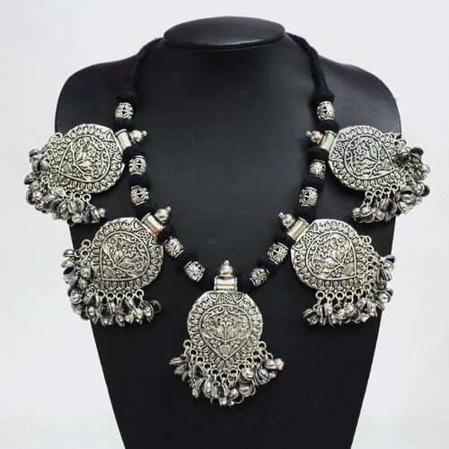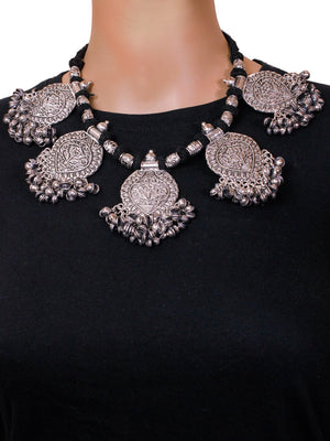 German Silver Ghungroo Floral Pendant Motif Necklace