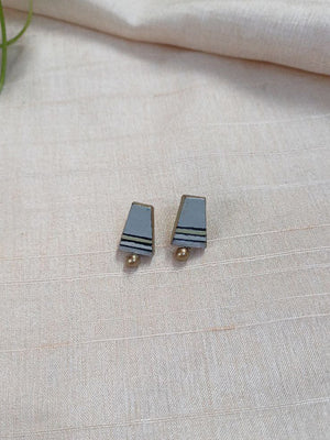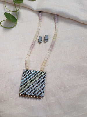 Pastel Prism Terracotta Necklace Set with Striped Square Pendant – Contemporary Chic Stud Earrings
