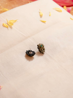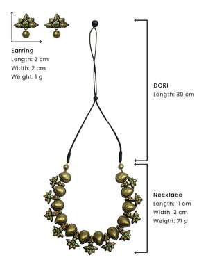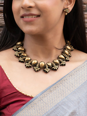 Pear Shape Antique Gold Red Green Kundan Stone Handmade Terracotta Necklace Set