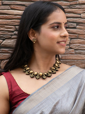 Please ensure you preserve the terracotta jewelry inside the foam sheet in the plastic box given by Jumkey. You can wipe it off with a dry cloth if there is any sweat or dust on the terracotta jewelry. Always ensure terracotta jewelry is the last thing to wear and the first thing to remove when you’re back from a function or event. Keep the terracotta jewelry away from perfume and chemicals (cosmetics). Ensure you apply your makeup, foundation, cosmetics, perfume first and then wear the terracotta jewelry in the end. In short, terracotta jewellery should be the last thing to be worn and the first thing to be removed.