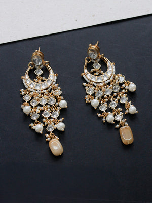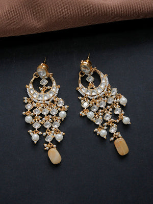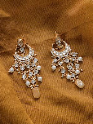 Premium Crafted 18K Gold Plated Bridal Kundan Chandbali Earrings with Gemstone and Pearl Drops