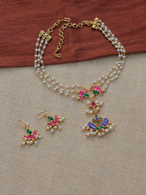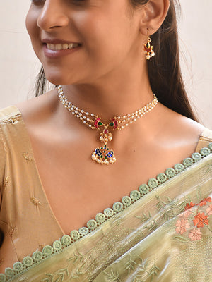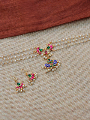 Premium Celebrity Styles - Elegant Multi-Layer Pearl Necklace Set with Crescent Motifs & Enamel Detailing Finish