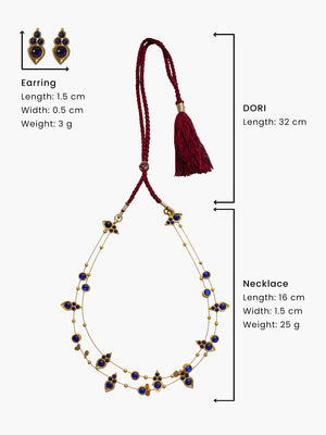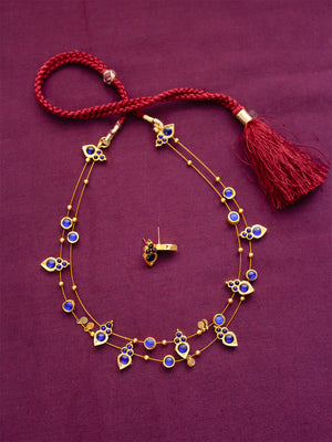 Home Premium Gold Finish Blue Two Layered Kemp Stones Necklace Set