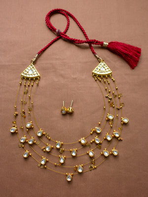 Premium Gold Finish Kundan 5 Layered Necklace Set