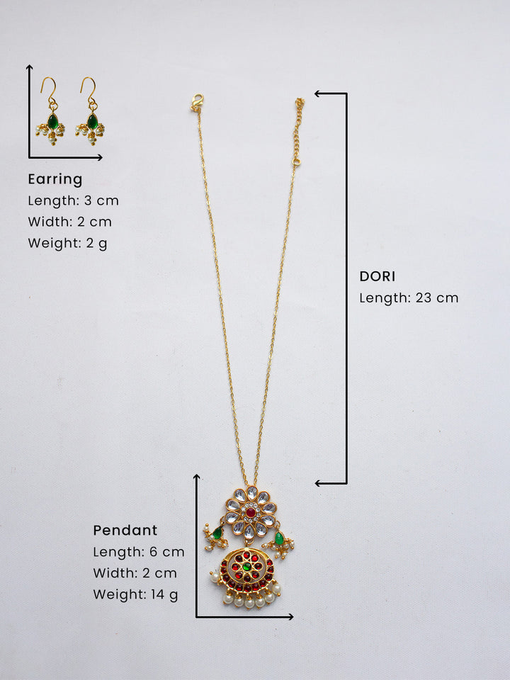 Home Premium Gold Finish Red Green Kundan Stone Metal Chain Necklace Set