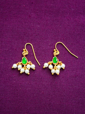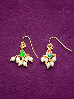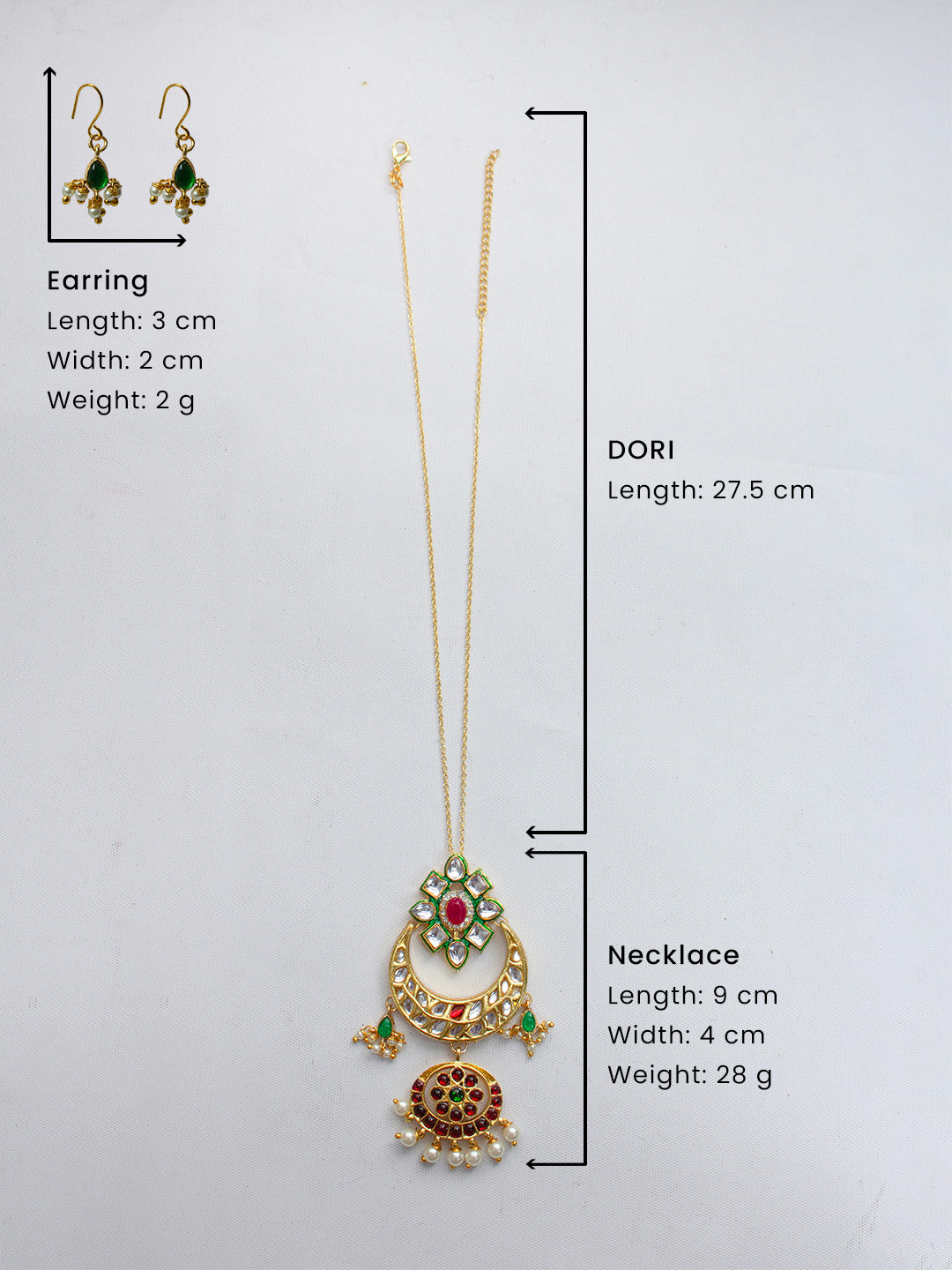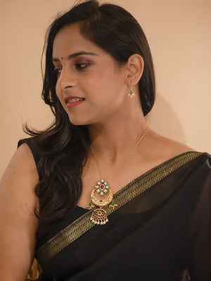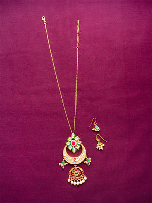 Premium Gold Finish Red Green Kundan Stone Metal Chain Necklace Set