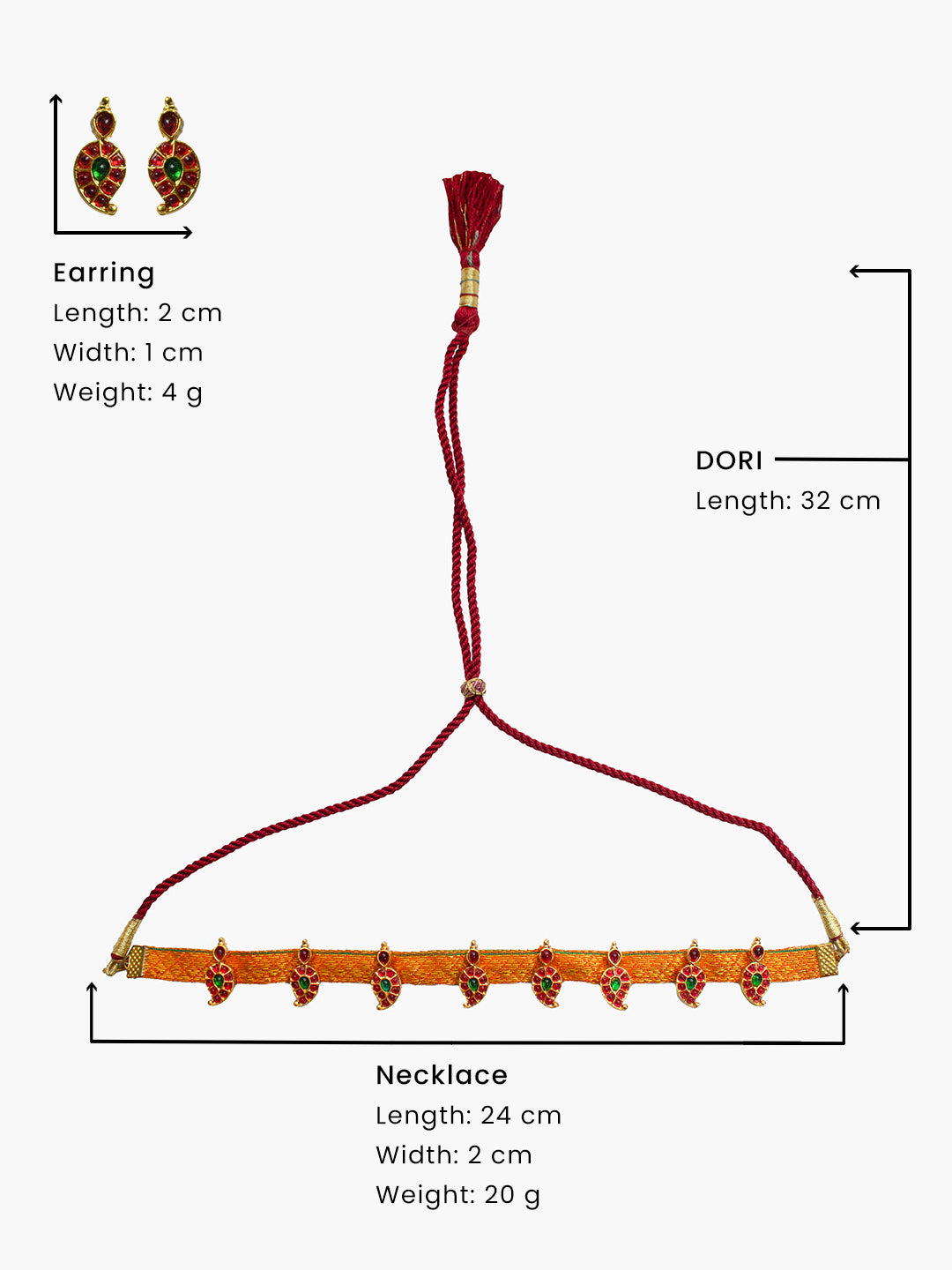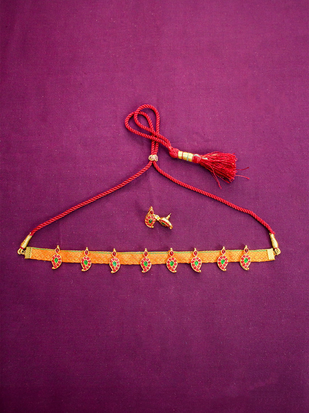Home Premium Gold Finish Red Green Mango Kemp Stone Choker Set
