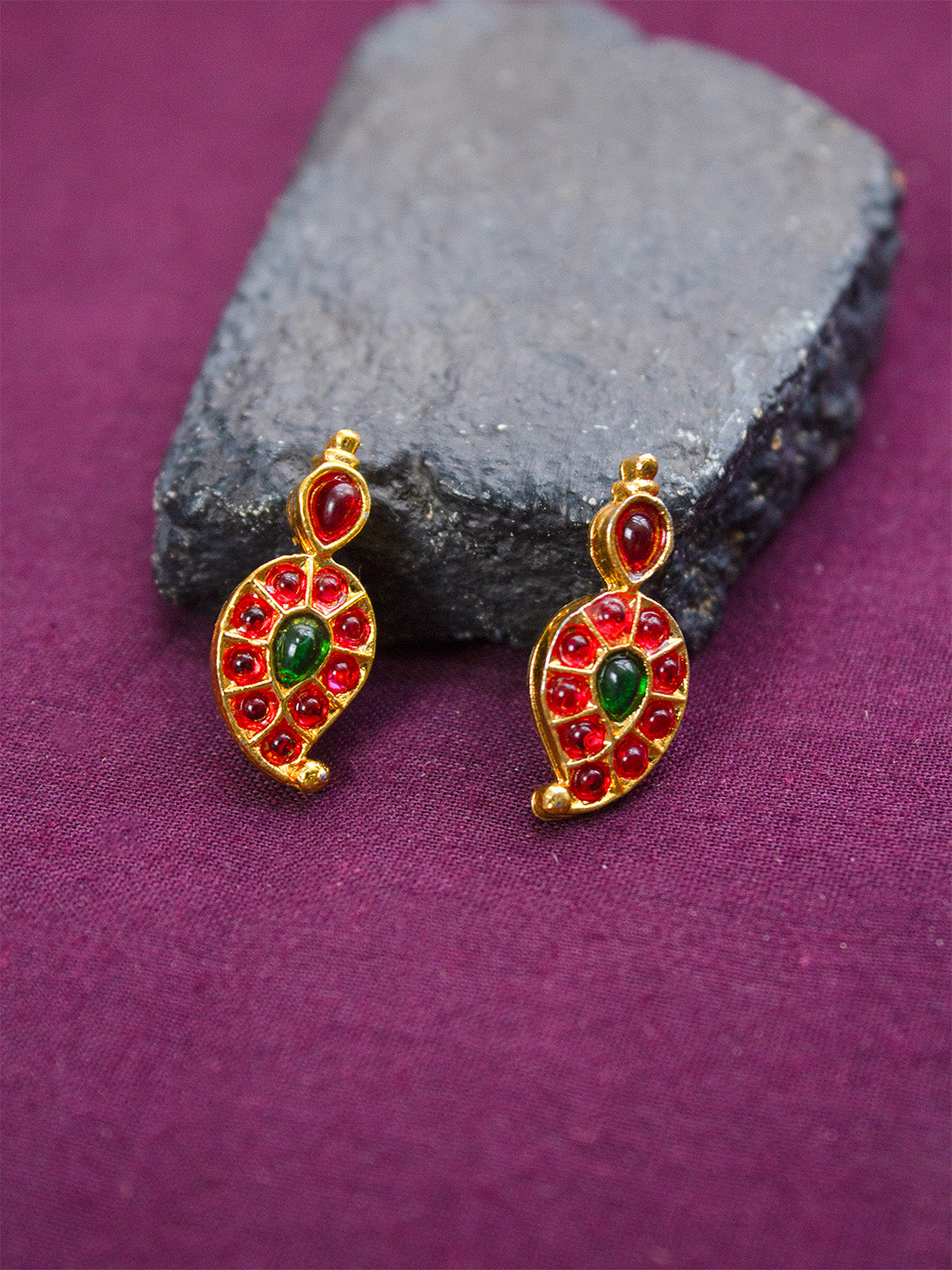 Premium Gold Finish Red Green Mango Kemp Stone Choker Set
