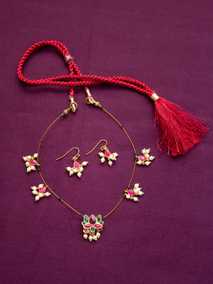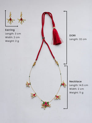 Home Premium Gold Finish Red Green Pearls Necklace Set