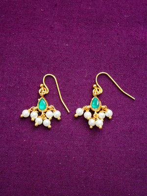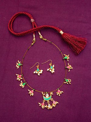 Premium Gold Finish Red Green Pearls Necklace Set