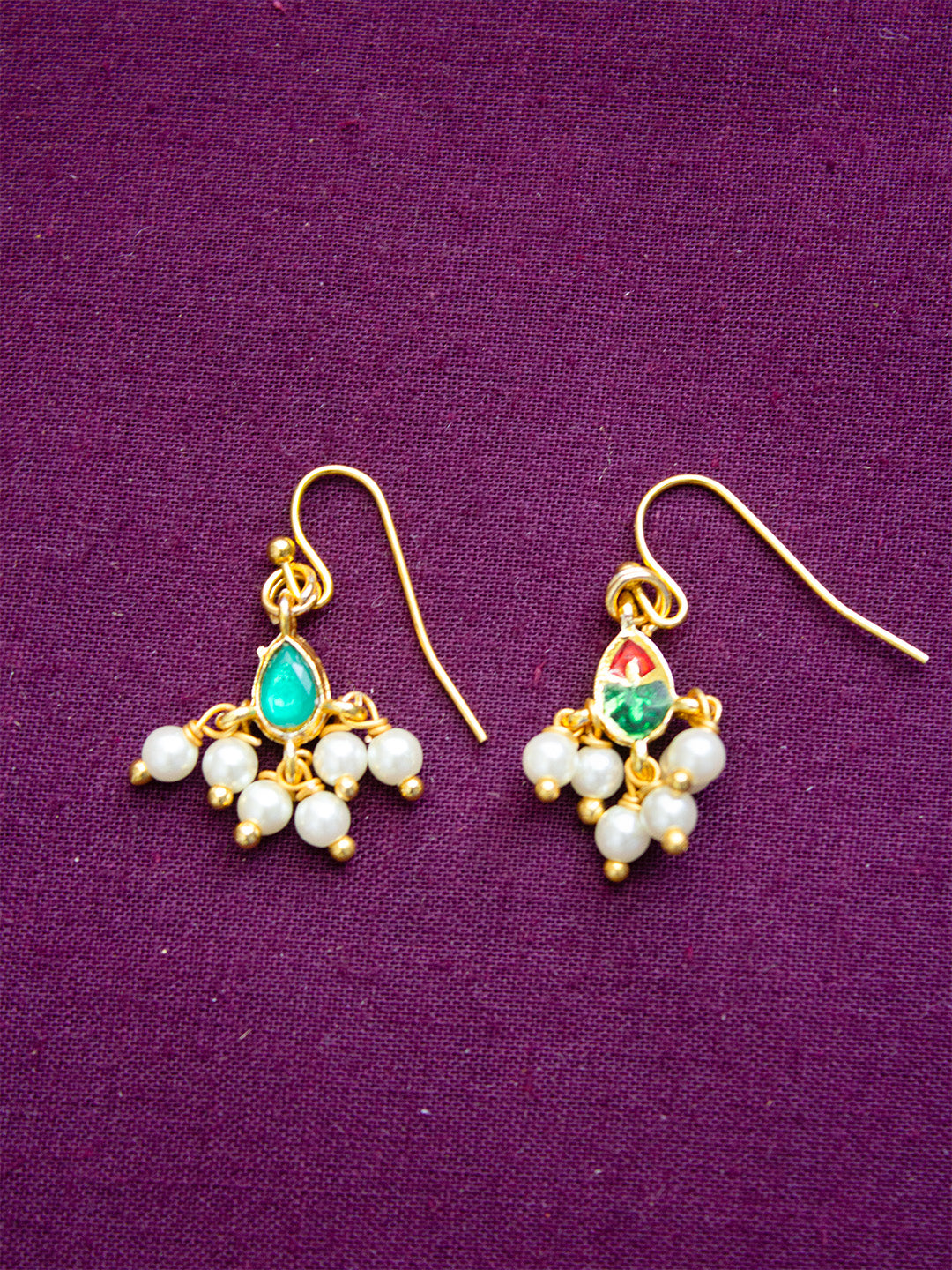 Home Premium Gold Finish Red Green Pearls Necklace Set