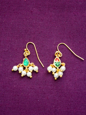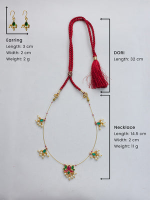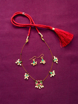 Home Premium Gold Finish Red Green Pearls Necklace Set