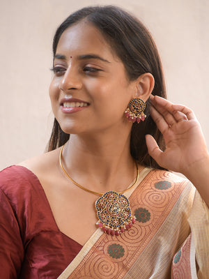 Premium Gold-Plated Floral Motif Necklace Set with Blue, Pink Agate, and Pearls