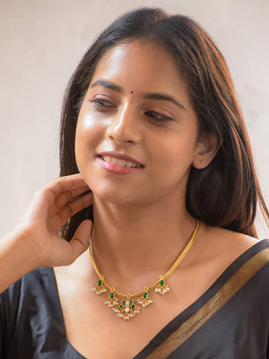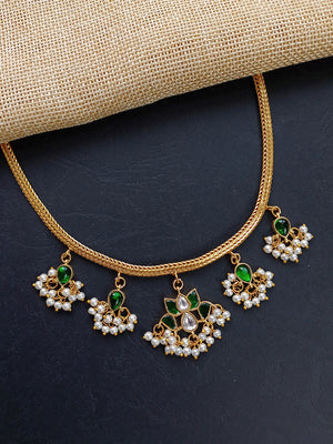 Premium Gold-Plated Lotus Jadau Kundan Necklace with Green Accents and Pearls