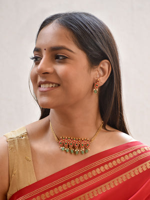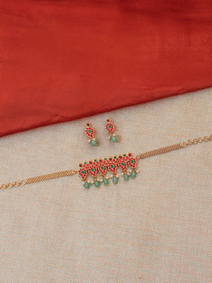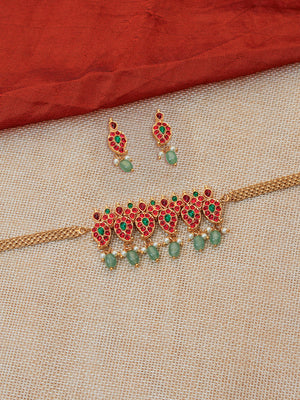 Premium Handcrafted Gold-Toned Choker Set with Ruby & Emerald Accents