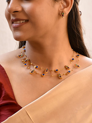 Premium Handcrafted Kemp Mango Stones 2 Layered Necklace Set in Ruby, Green & Sapphire Blue Multicolor Stones
